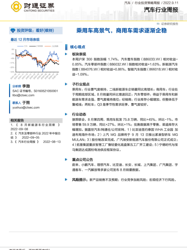【财通证券】【20220911】20220911-财通证券-汽车行业周报:乘用车高景气,商用车需求逐渐企稳-26页