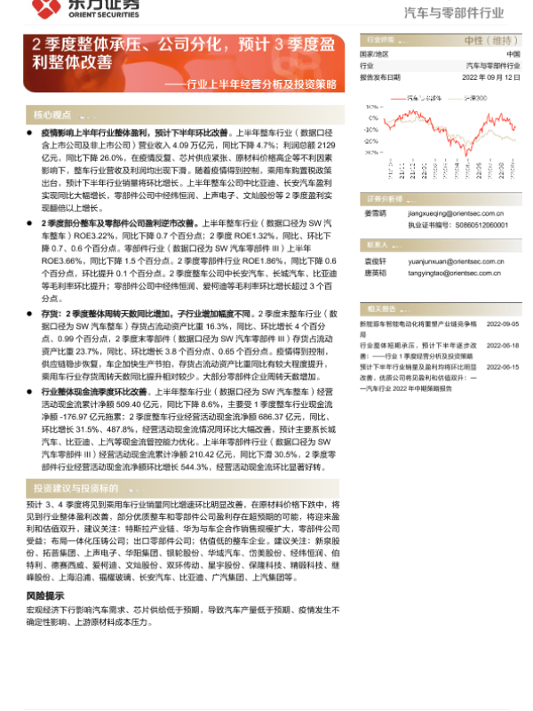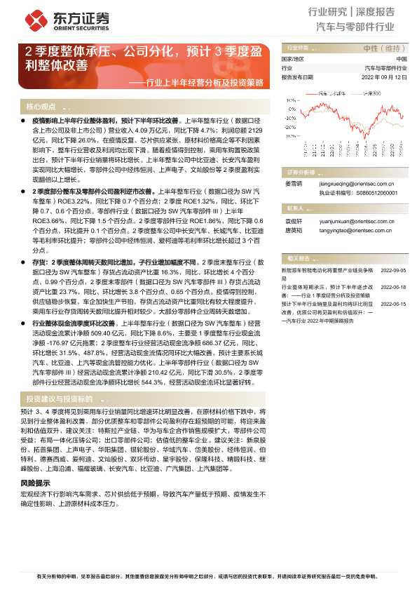 【东方证券】【20220912】汽车与零部件行业深度报告:行业上半年经营分析及投资策略-25页