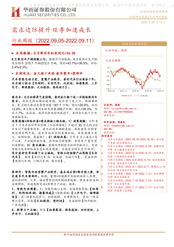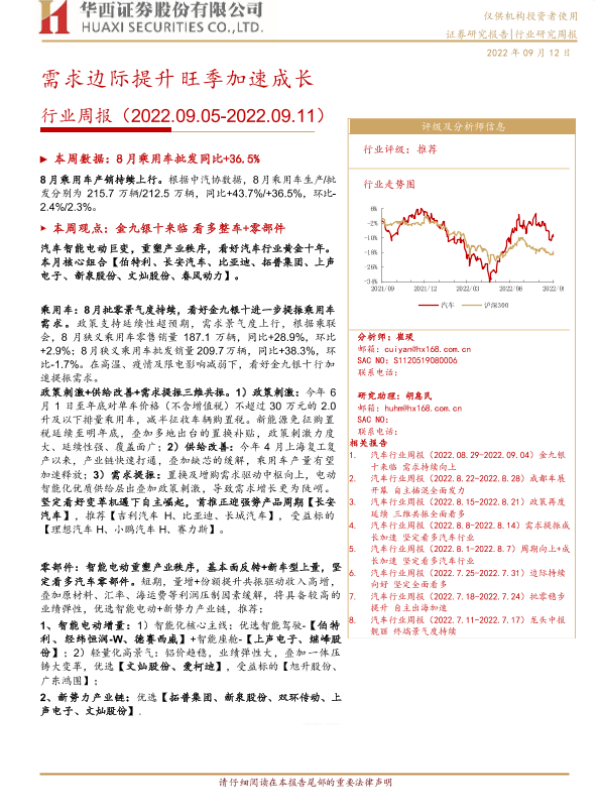 【华西证券】【20220912】20220912-华西证券-汽车行业周报:需求边际提升 旺季加速成长-22页