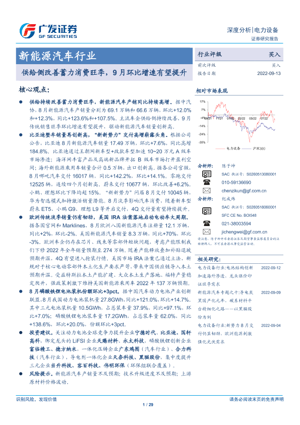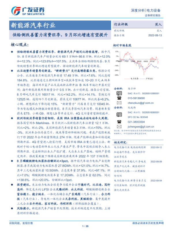 【广发证券】【20220913】新能源汽车行业深度分析:供给侧改善蓄力消费旺季,9月环比增速有望提升-29页