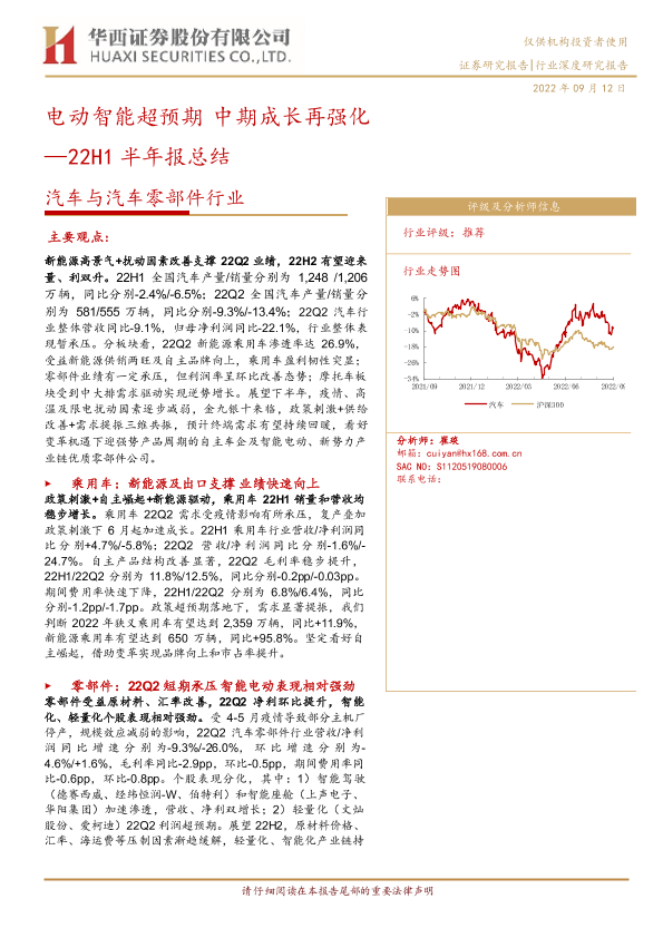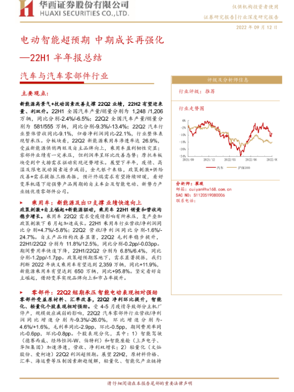 【华西证券】【20220912】22H1半年报总结-电动智能超预期 中期成长再强化-41页