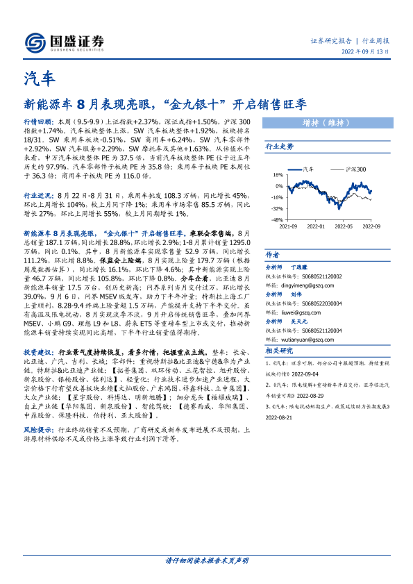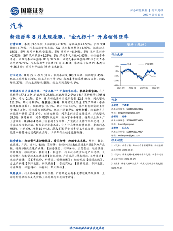 【国盛证券】【20220913】20220913-国盛证券-汽车行业周报:新能源车8月表现亮眼,“金九银十”开启销售旺季-23页