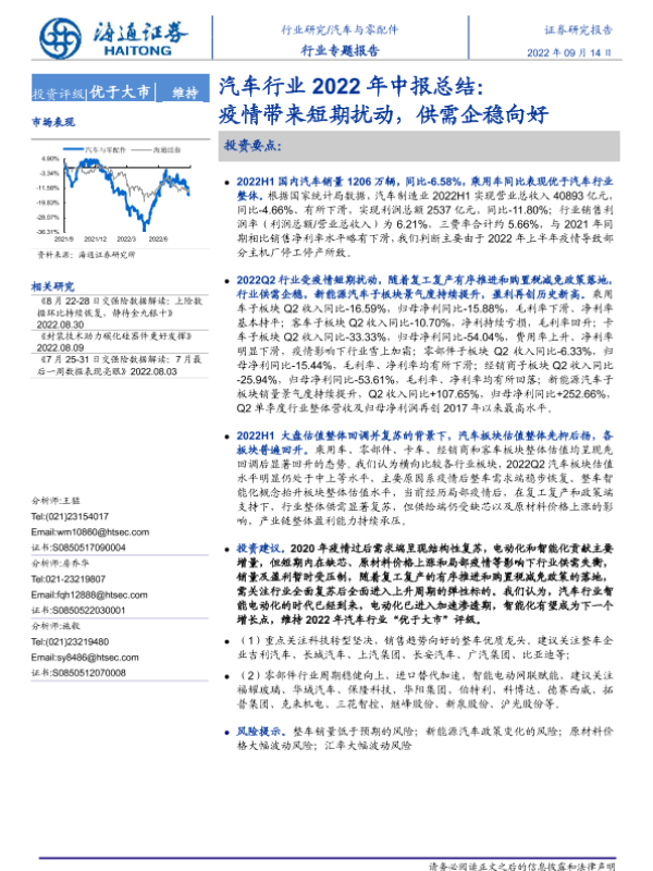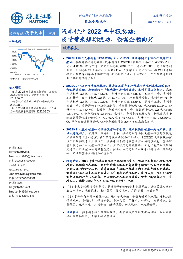 【海通证券】【20220914】汽车行业2022年中报总结:疫情带来短期扰动,供需企稳向好-23页
