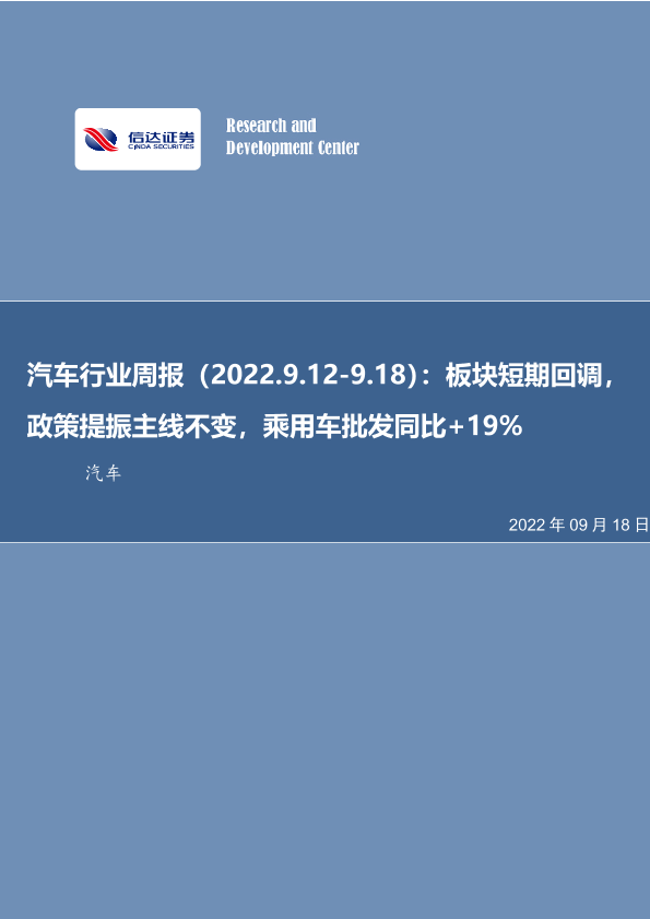 【信达证券】【20220918】20220918-信达证券-汽车行业周报:板块短期回调,政策提振主线不变,乘用车批发同比+19%-26页