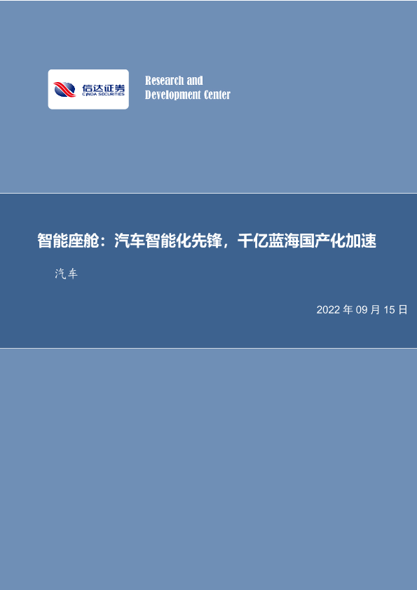 【信达证券】【20220915】智能座舱:汽车智能化先锋,千亿蓝海国产化加速-58页