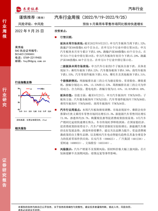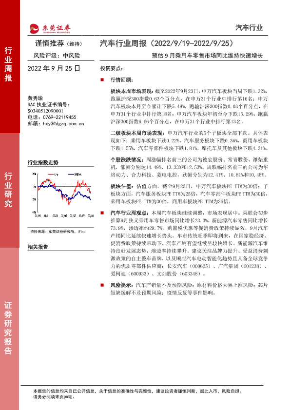 【东莞证券】【20220925】汽车行业周报:预估9月乘用车零售市场同比维持快速增长-12页