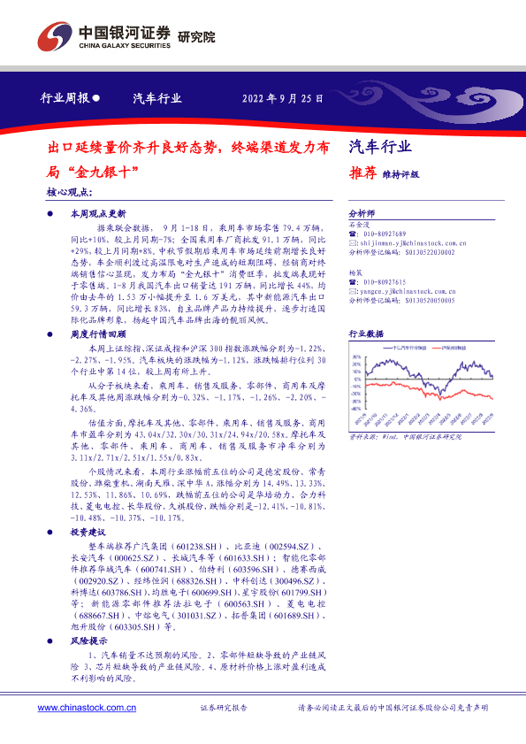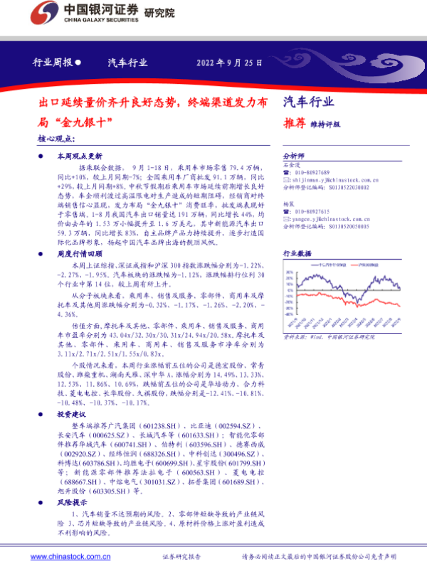 【银河证券】【20220925】汽车行业周报:出口延续量价齐升良好态势,终端渠道发力布局“金九银十”-13页