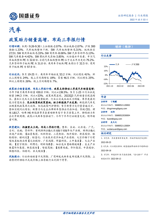 【国盛证券】【20221003】20221003-国盛证券-汽车行业周报:政策助力销量高增,布局三季报行情-23页