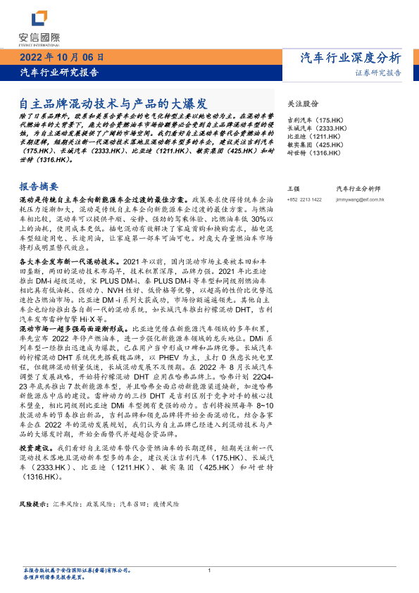 【国证国际】【20221006】汽车行业深度分析:自主品牌混动技术与产品的大爆发-10页