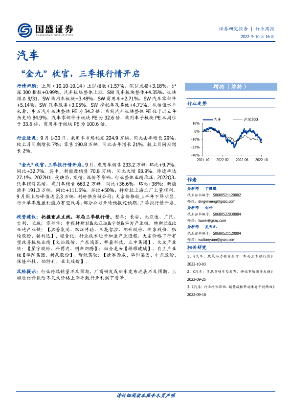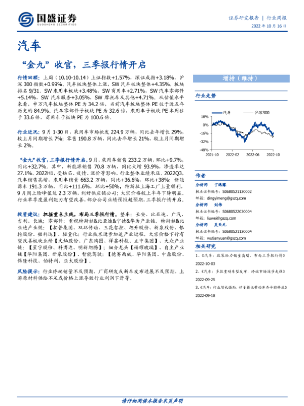 【国盛证券】【20221016】20221016-国盛证券-汽车行业周报:“金九”收官,三季报行情开启-24页