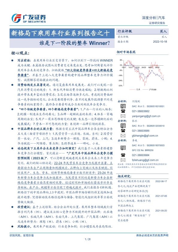 【广发证券】【20221018】新格局下乘用车行业系列报告之十:谁是下一阶段的整车Winner?-31页