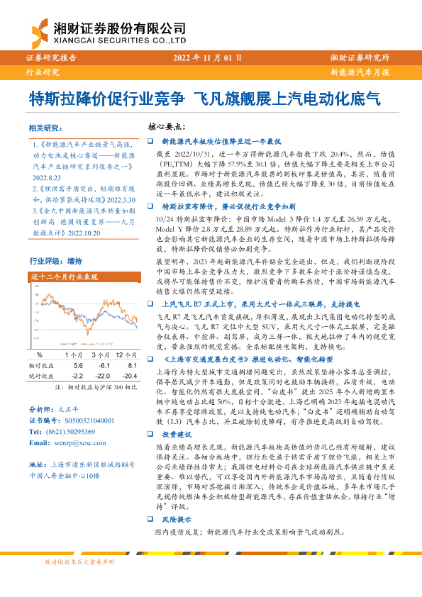 【湘财证券】【20221101】特斯拉降价促行业竞争 飞凡旗舰展上汽电动化底气-14页
