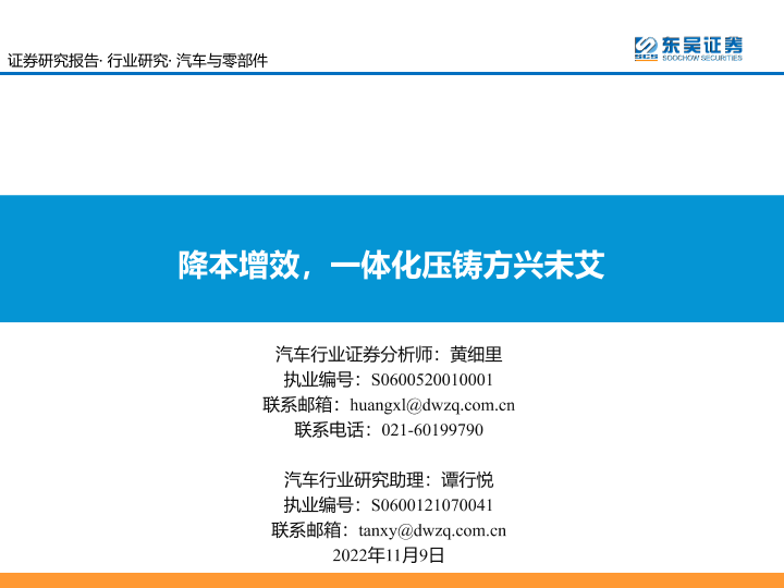 【东吴证券】【20221109】降本增效,一体化压铸方兴未艾-42页