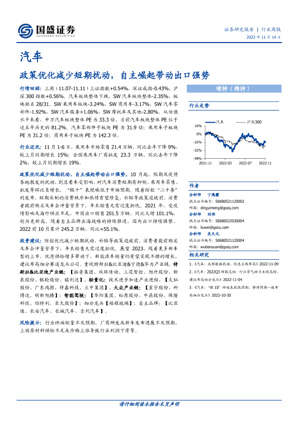 【国盛证券】【20221114】20221114-国盛证券-汽车行业周报:政策优化减少短期扰动,自主崛起带动出口强势-23页