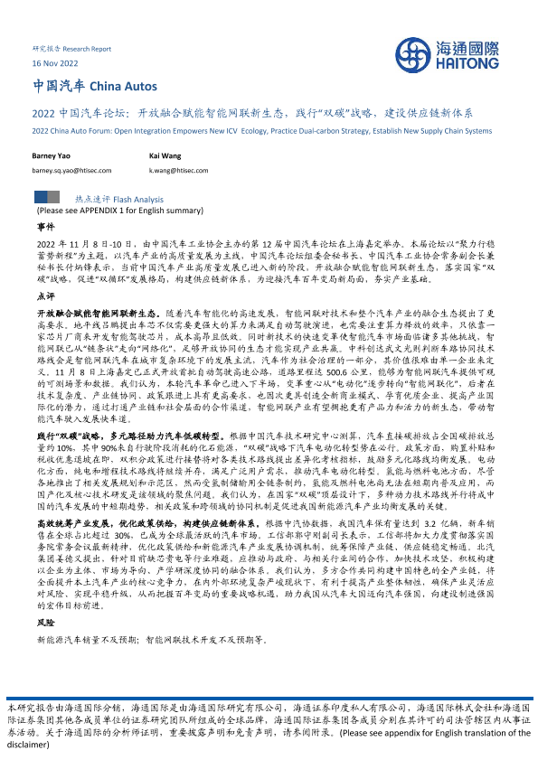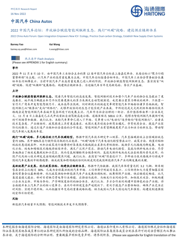 【海通国际】【20221116】2022中国汽车论坛:开放融合赋能智能网联新生态,践行“双碳”战略,建设供应链新体系-21页
