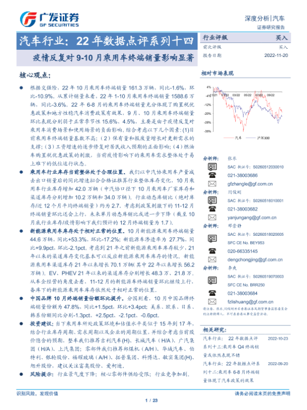 【广发证券】【20221120】汽车行业:22年数据点评系列十四-疫情反复对9-10月乘用车终端销量影响显著-23页