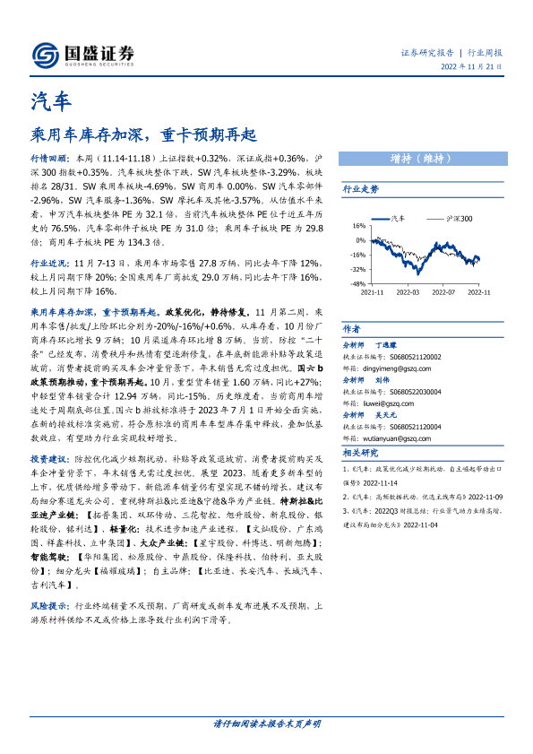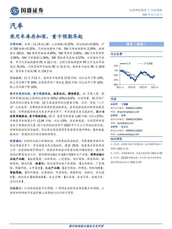【国盛证券】【20221121】20221121-国盛证券-汽车行业周报:乘用车库存加深,重卡预期再起-23页