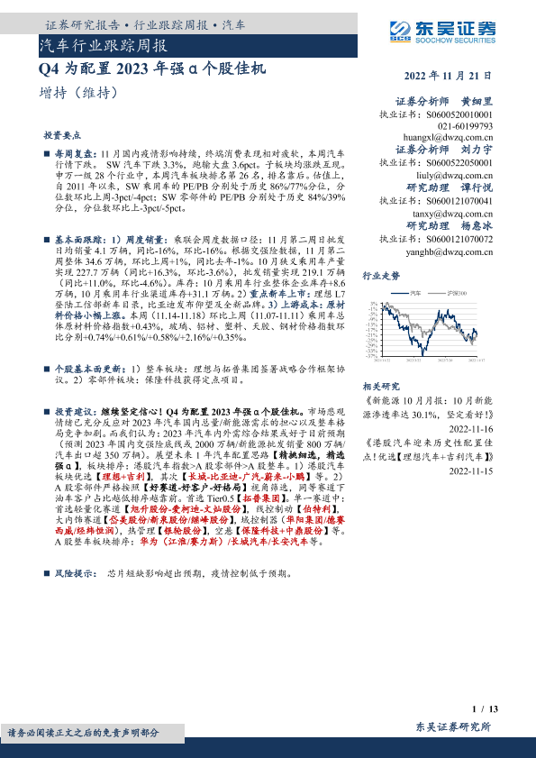 【东吴证券】【20221121】汽车行业跟踪周报:Q4为配置2023年强α个股佳机-13页