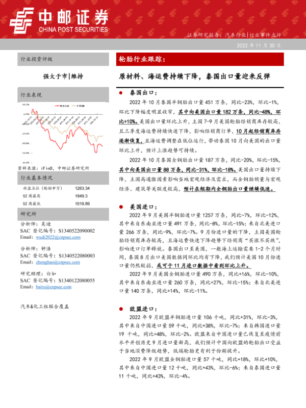 【中邮证券】【20221201】20221201-中邮证券-轮胎行业跟踪:原材料、海运费持续下降,泰国出口量迎来反弹-10页