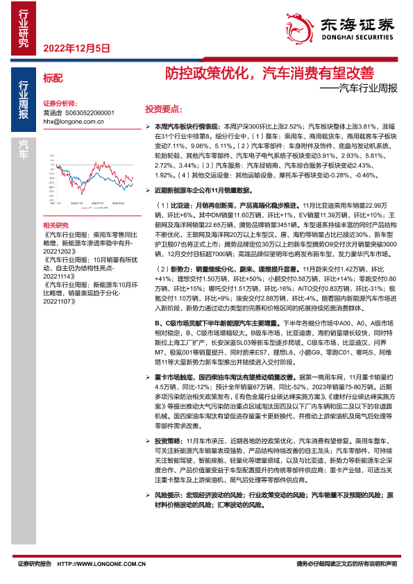 【东海证券】【20221205】防控政策优化,汽车消费有望改善-15页