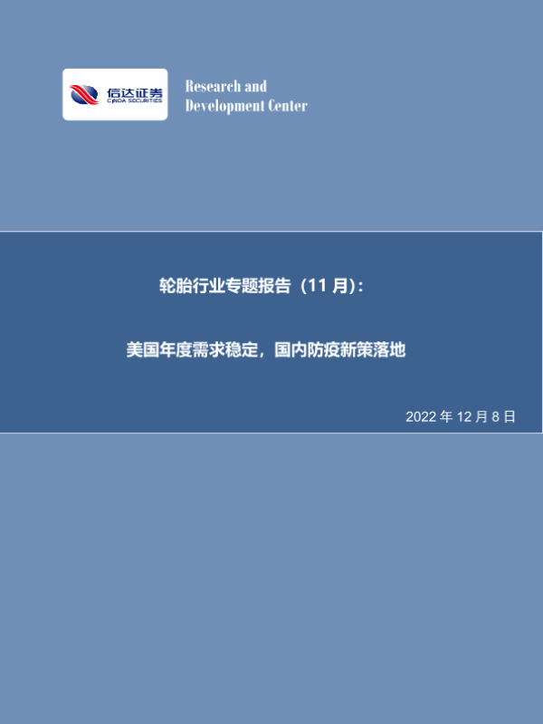【信达证券】【20221208】20221208-信达证券-轮胎行业专题报告(11月):美国年度需求稳定,国内防疫新策落地-19页