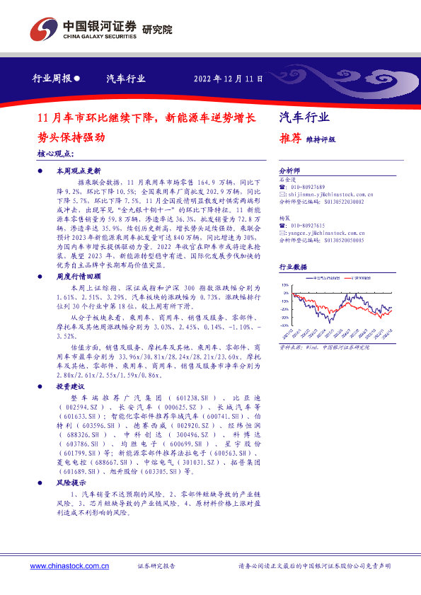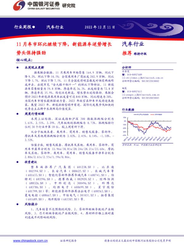 【银河证券】【20221211】20221211-中国银河-汽车行业周报:11月车市环比继续下降,新能源车逆势增长势头保持强劲-12页