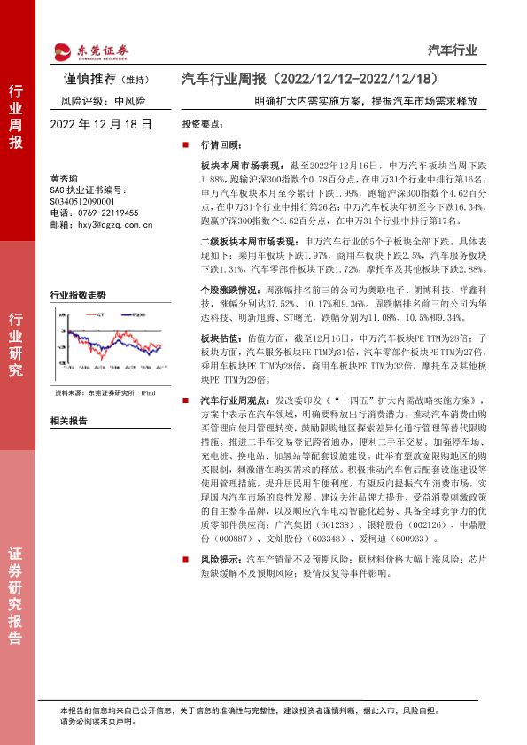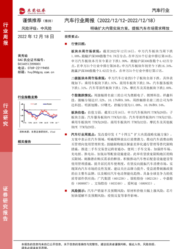 【东莞证券】【20221218】20221218-东莞证券-汽车行业周报:明确扩大内需实施方案,提振汽车市场需求释放-12页
