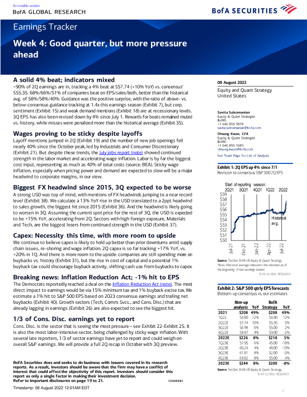 【BofA Securities】【20220808】Earnings Tracker Week 4 - Good quarter, but more pressure ahead-22页