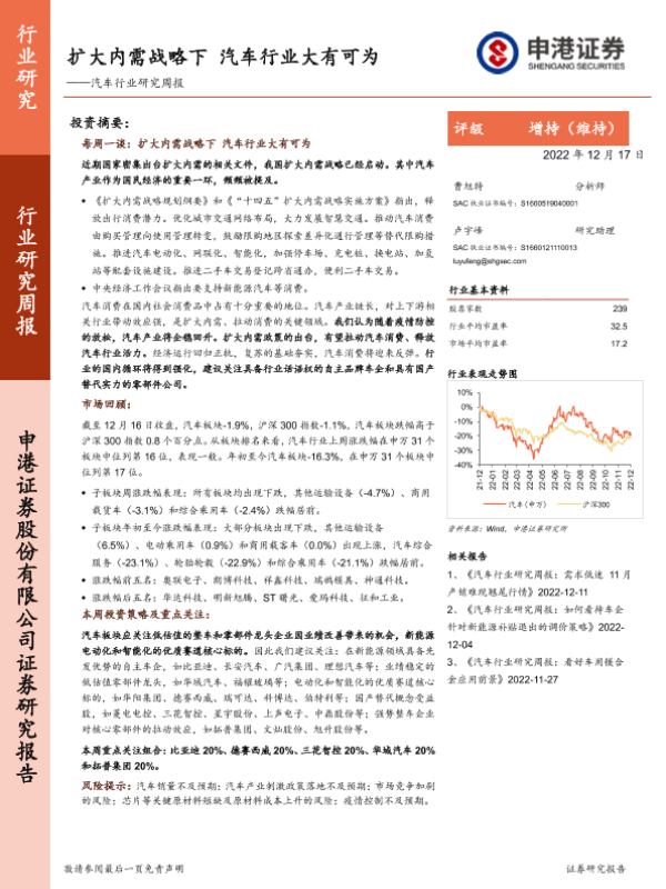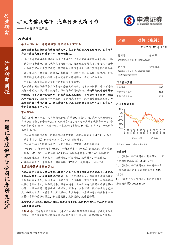 【申港证券】【20221217】扩大内需战略下汽车行业大有可为-15页