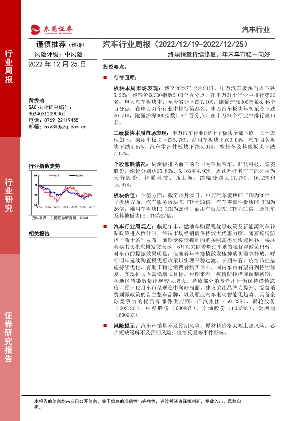 【东莞证券】【20221225】汽车行业周报:终端销量持续修复,年末车市稳中向好-12页