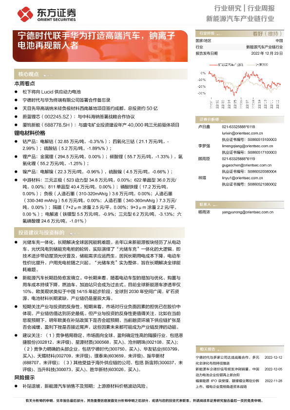 【东方证券】【20221223】新能源汽车产业链行业周报:宁德时代联手华为打造高端汽车,钠离子电池再现新入者-14页