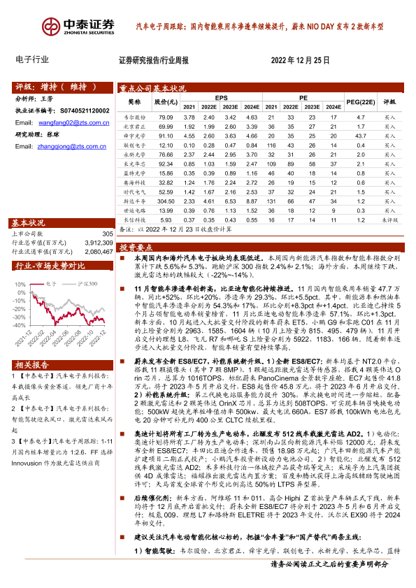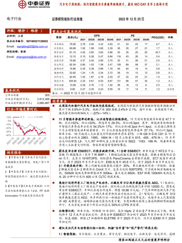 【中泰证券】【20221225】汽车电子周跟踪:国内智能乘用车渗透率继续提升,蔚来NIO DAY发布2款新车型-14页