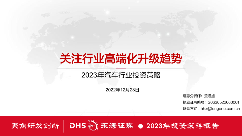 【东海证券】【20221228】2023年汽车行业投资策略:关注行业高端化升级趋势-31页