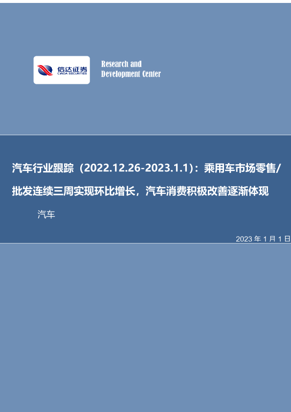 【信达证券】【20230101】20230101-信达证券-汽车行业跟踪:乘用车市场零售 批发连续三周实现环比增长,汽车消费积极改善逐渐体现-21页