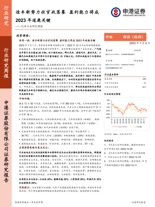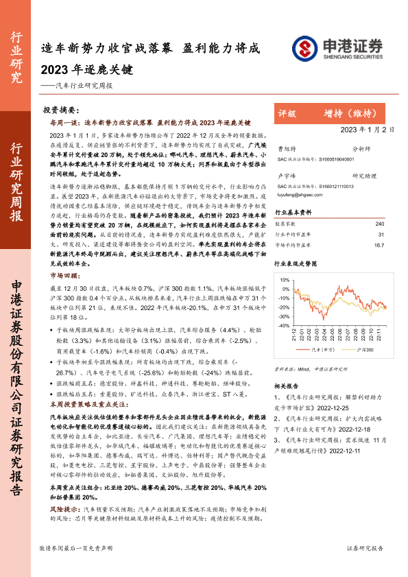 【申港证券】【20230102】造车新势力收官战落幕 盈利能力将成2023年逐鹿关键-15页