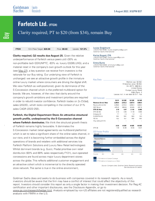 【Goldman Sachs】【20220805】Farfetch Ltd. (FTCH)_ Clarity required; PT to $20 (from $34), remain Buy-21页
