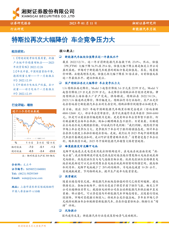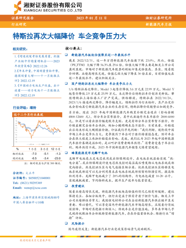 【湘财证券】【20230111】特斯拉再次大幅降价 车企竞争压力大-15页