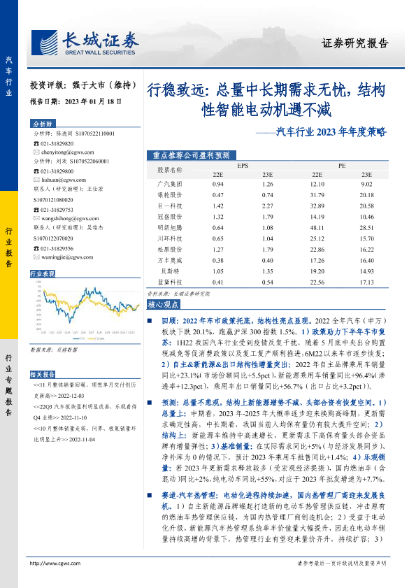 【长城证券】【20230118】2023年汽车行业年度策略:行稳致远:总量中长期需求无忧,结构性智能电动机遇不减-50页