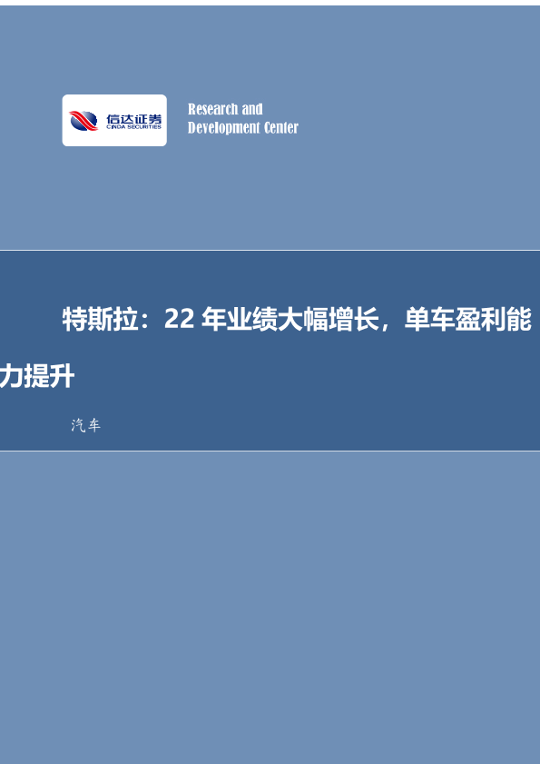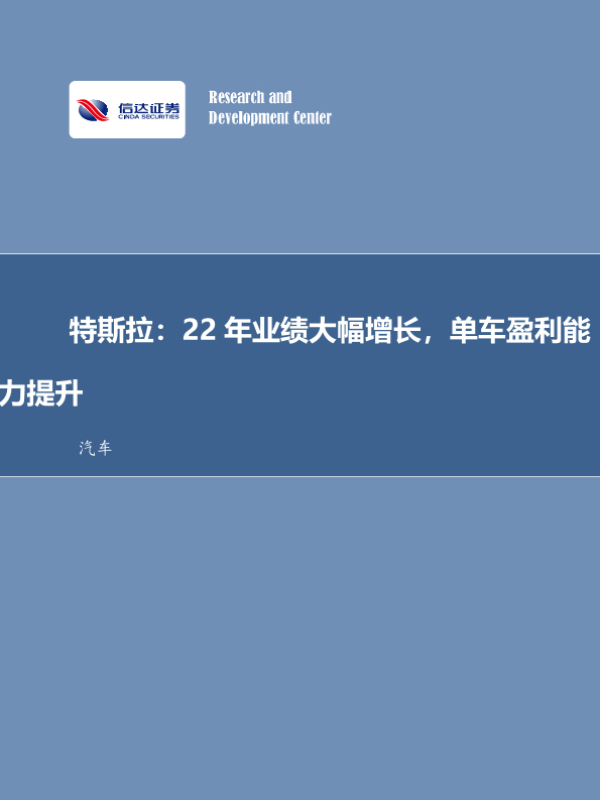 【信达证券】【20230126】特斯拉行业专题研究:22年业绩大幅增长,单车盈利能力提升-14页