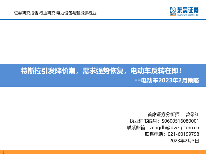 【东吴证券】【20230203】电动车2023年2月策略:特斯拉引发降价潮,需求强势恢复,电动车反转在即!-72页