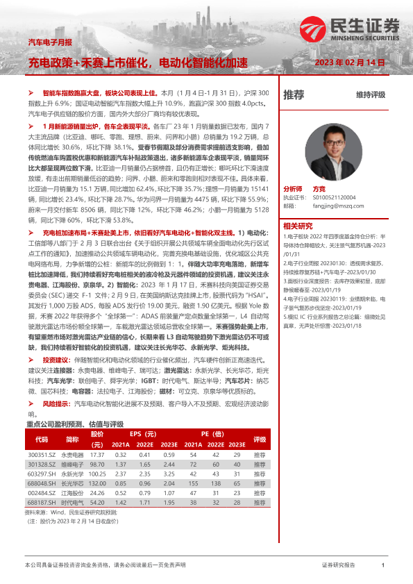 【民生证券】【20230214】汽车电子月报:充电政策+禾赛上市催化,电动化智能化加速-20页