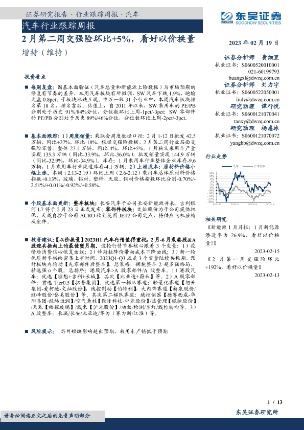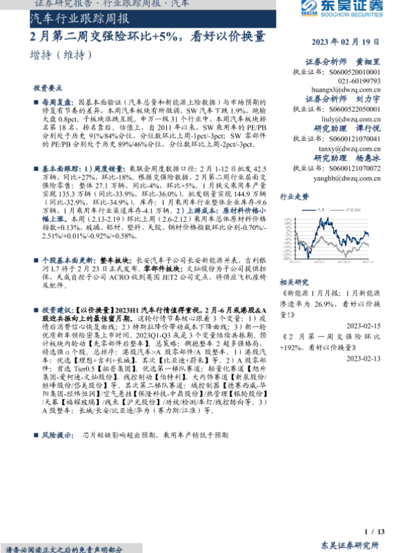 【东吴证券】【20230219】2月第二周交强险环比+5%,看好以价换量-13页