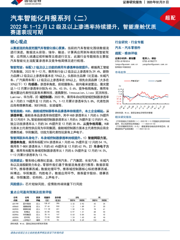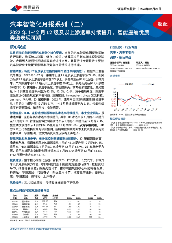 【国信证券】【20230221】20230221-国信证券-汽车智能化月报系列(二):2022年1-12月L2级及以上渗透率持续提升,智能座舱优质赛道表现可期-47页