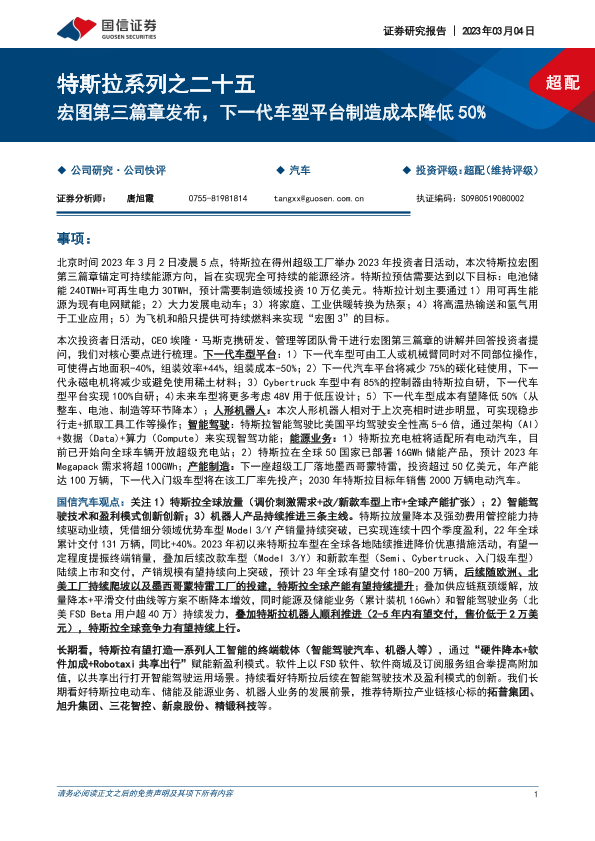 【国信证券】【20230304】特斯拉系列之二十五:宏图第三篇章发布,下一代车型平台制造成本降低50%-14页