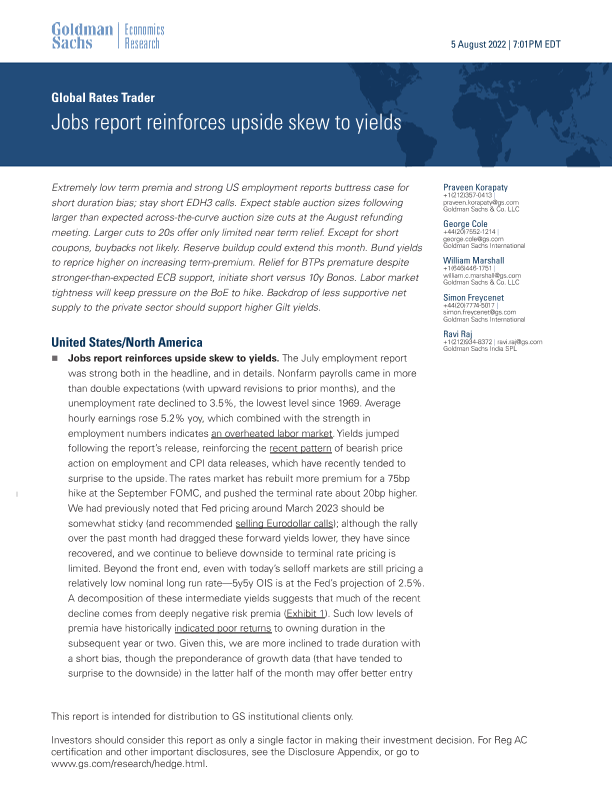 【Goldman Sachs】【20220805】Global Rates Trader Jobs report reinforces upside skew to yields-18页