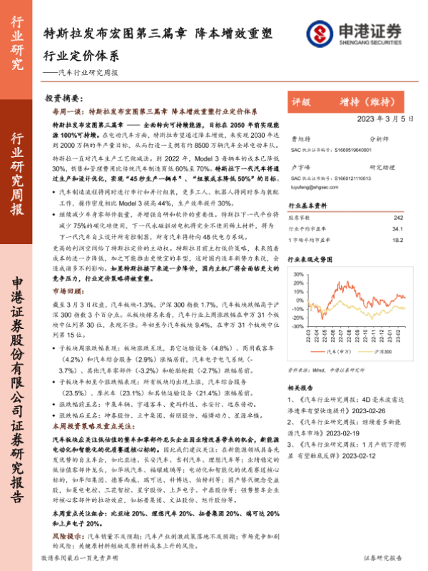 【申港证券】【20230305】20230305-申港证券-汽车行业研究周报:特斯拉发布宏图第三篇章 降本增效重塑行业定价体系-15页