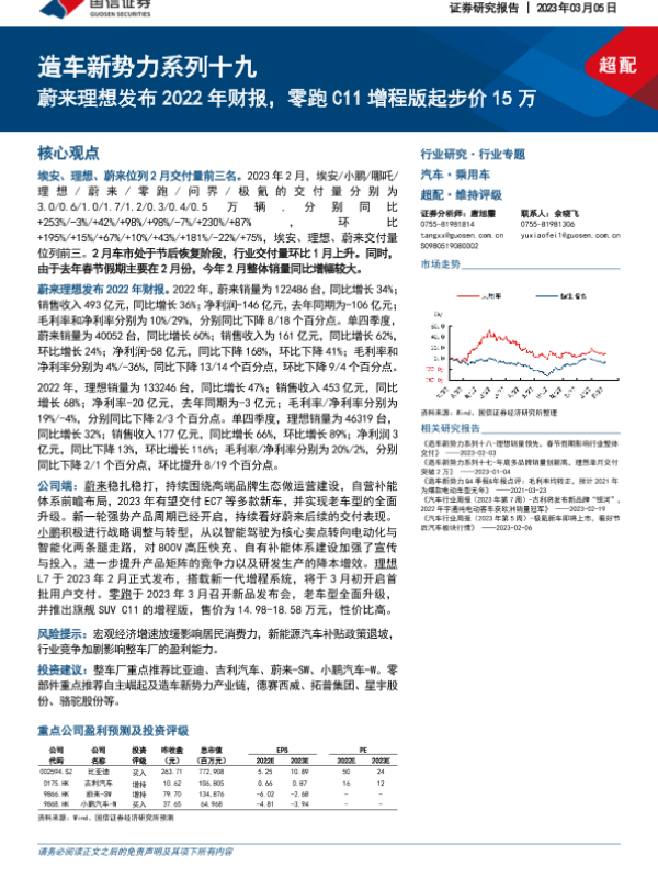 【国信证券】【20230305】造车新势力系列十九:蔚来理想发布2022年财报,零跑C11增程版起步价15万-35页