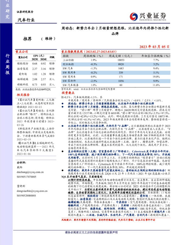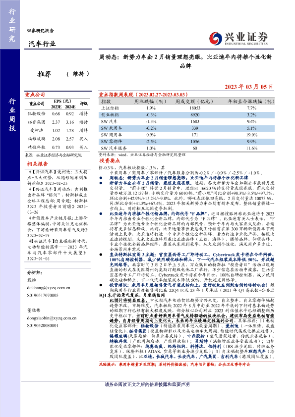 【兴业证券】【20230305】新势力车企2月销量理想亮眼,比亚迪年内将推个性化新品牌-29页