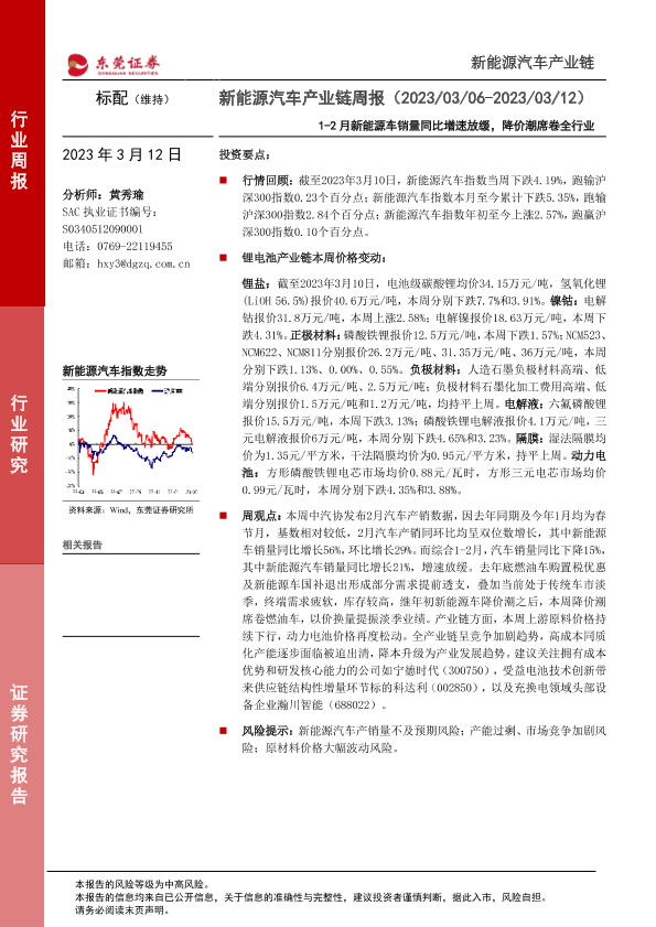 【东莞证券】【20230312】20230312-东莞证券-新能源汽车产业链周报:1-2月新能源车销量同比增速放缓,降价潮席卷全行业-12页