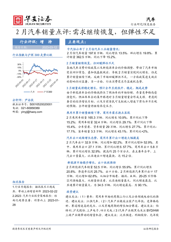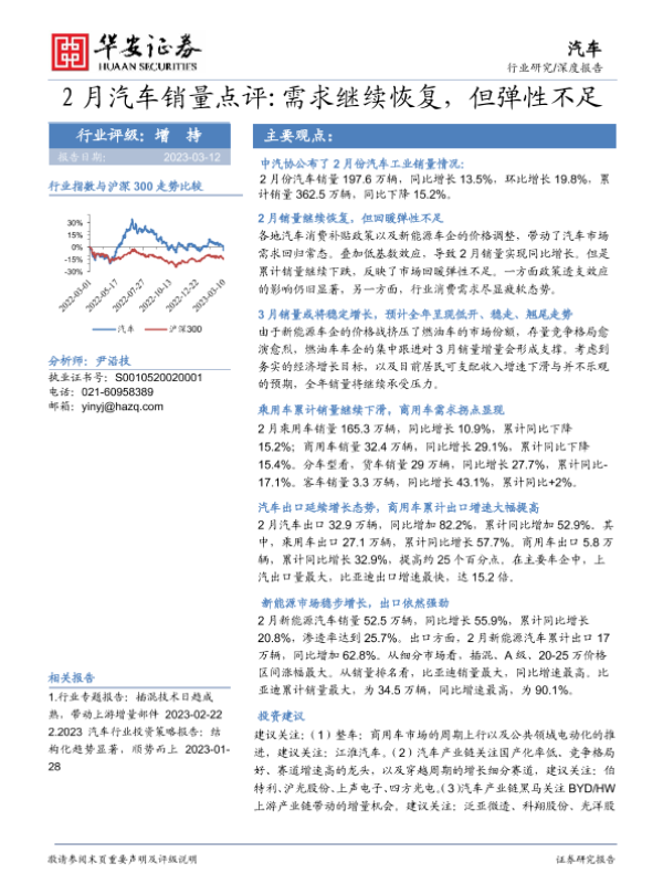 【华安证券】【20230312】2月汽车销量点评:需求继续恢复,但弹性不足-14页